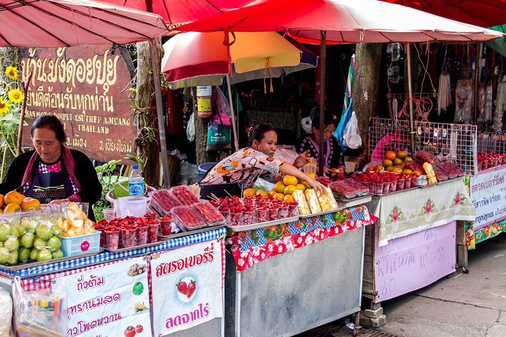 When you enter the village you are meet by souvenir shops. There are also shops selling fruit and vegetable grown in the area around the village. For most the hill tribes in Thailand, farming is the main source of income.