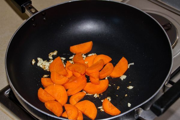 - Add the carrots, pour in a little of water and let it simmer until the carrots is done.