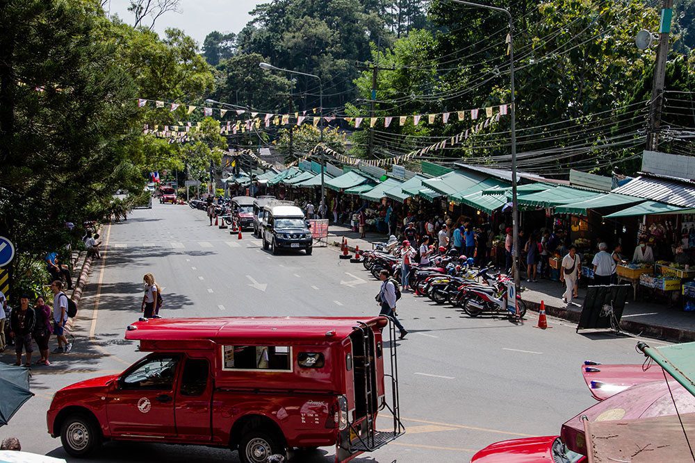 After i had made my way up Doi Suthep, and had arrived at the main entrance, i had to find a place to park my car. There was no parking anywhere nearby the entrance, there was “red taxies” and mini busses parked everywhere. I can not remember i have seen so many “red taxies” and minibusses at the same place, not even at the airport.