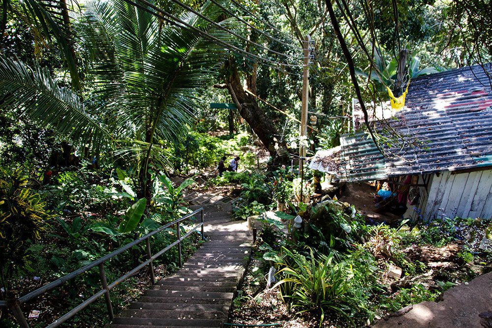 To enter the temple you must first climb a very long staircase. At the base and a little way up the staircase there is a lot of small selling stands souvenirs and food. When the stands stops people collecting money for charities take over.