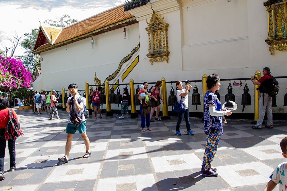 I have never seen so people in a temple in Chiang Mai before, there was people everywhere. I asked a monk if it was normal with so many people. With pride in his voice he answered “No normally there is more”. I asked him if there was any time at the day where there it was not so crowded, he said about 6 o’clock in the morning there is not much people, and added that the sunrise seen from the temple is very beautiful.