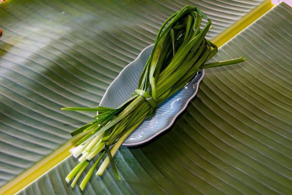 Add the top part of the Chinese chives that you have cut into pieces. Keep some for garnish.