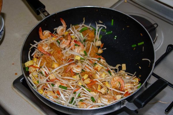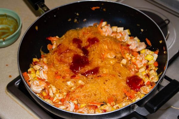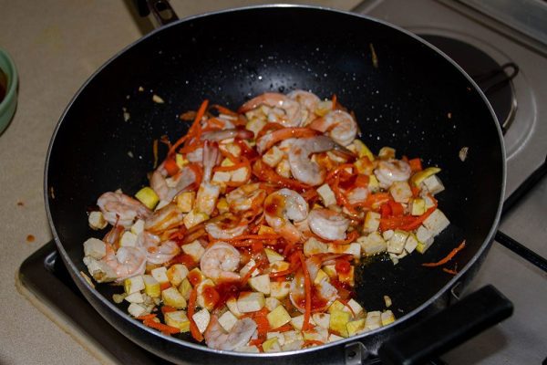 Prepare the tamarind sauce. You can buy ready made tamarind sauce for pad Thai, so you only have to mix it with water.