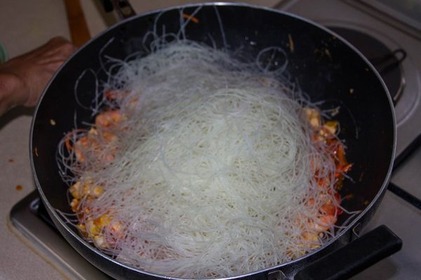 Soak the noodles in water for 15-20 minutes, as it makes them easier to cook.