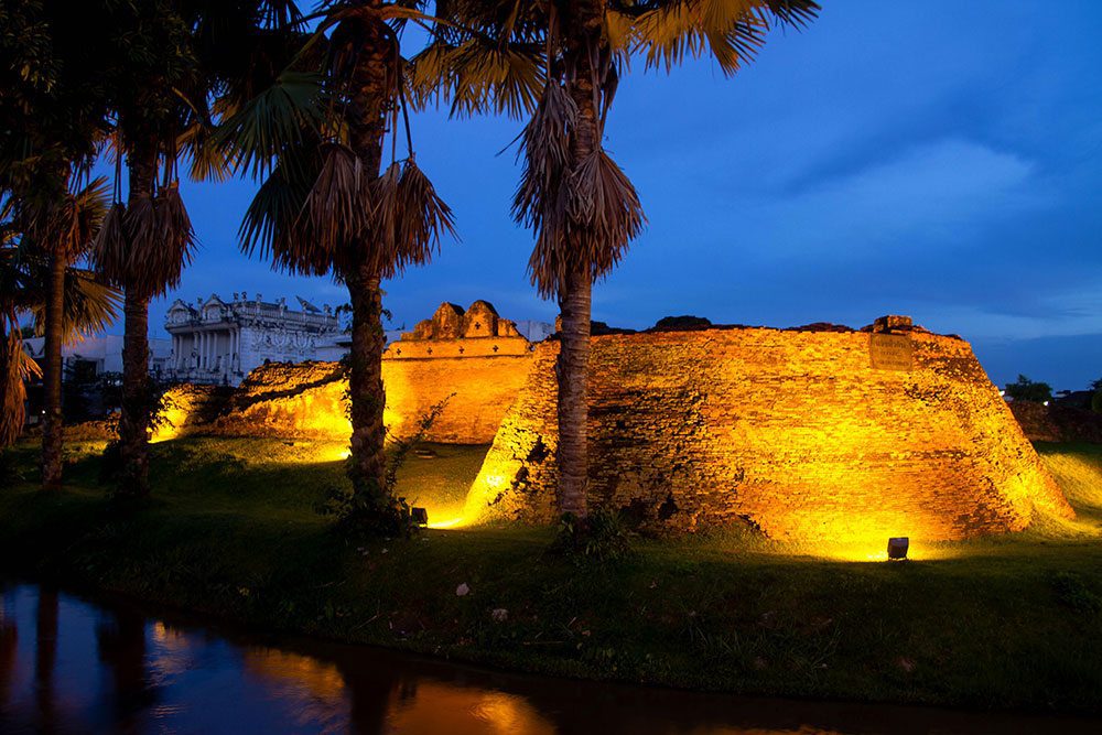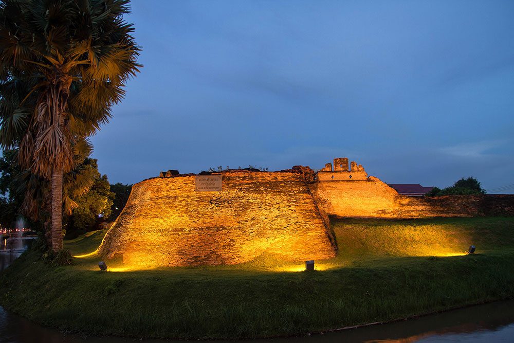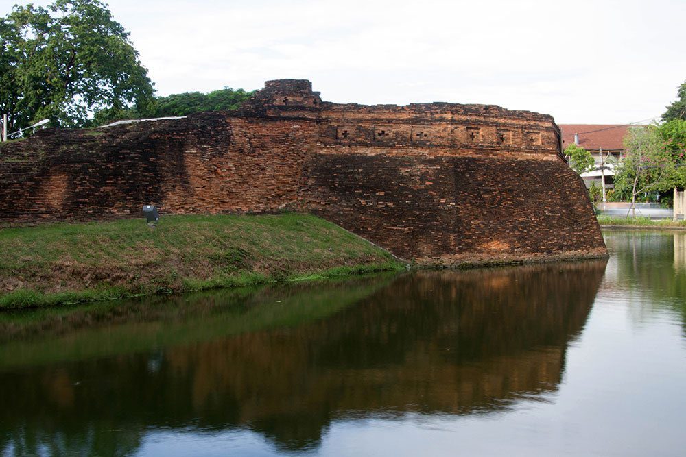 Most of the walls have collapsed, or the bricks have been used for other constructions in Chiang Mai, but the corner towers still stand almost intact.